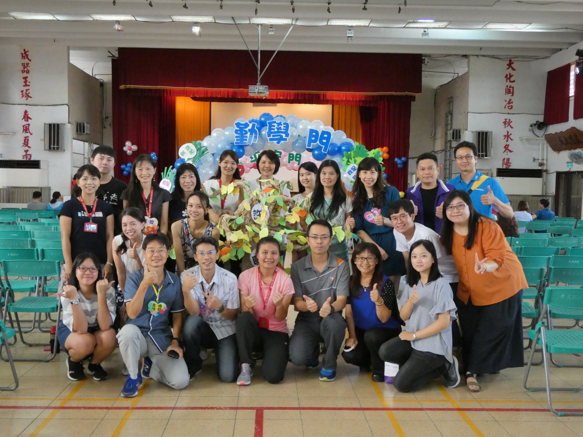 活動一開始,所有新生貼上在教室先寫好的許願樹葉卡,然後貼在精心設計的許願樹上,之後通過勤學門成為大成人。(芹菜、蔥、蒜氣球拱門,象徵『跨越勤學之門,進入大成之家』),接著頭頂西瓜造型海灘球走過巧拼獨木橋(巧拼獨木橋象徵『獨立自主』,頭頂西瓜『頂呱呱』) 。最後穿越「平安門」(蘋果氣球拱門,象徵『平平安安、健康快樂』)。新生再敲響「勇氣鼓」,在智慧門前,校長與會長贈送新生智慧福袋。